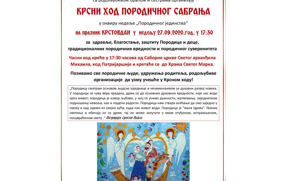 Savremeni svet je obuzet nebitnim stvarima koje nam ne hrane dušu, a ne znamo osnovne simbole vere.Ako nešto želimo da primenimo, moramo prvo promeniti sebe i svoje navike.Braćo i sestre nalazimo se u prelomnom trenutku za Srbiju kada je napadnuta porodica i porodični suverenitet.Za 7 godina ćemo biti manjina, a do 2050 nas Srba više neće biti- rekla nam je Aleksandra Knez Milojković.