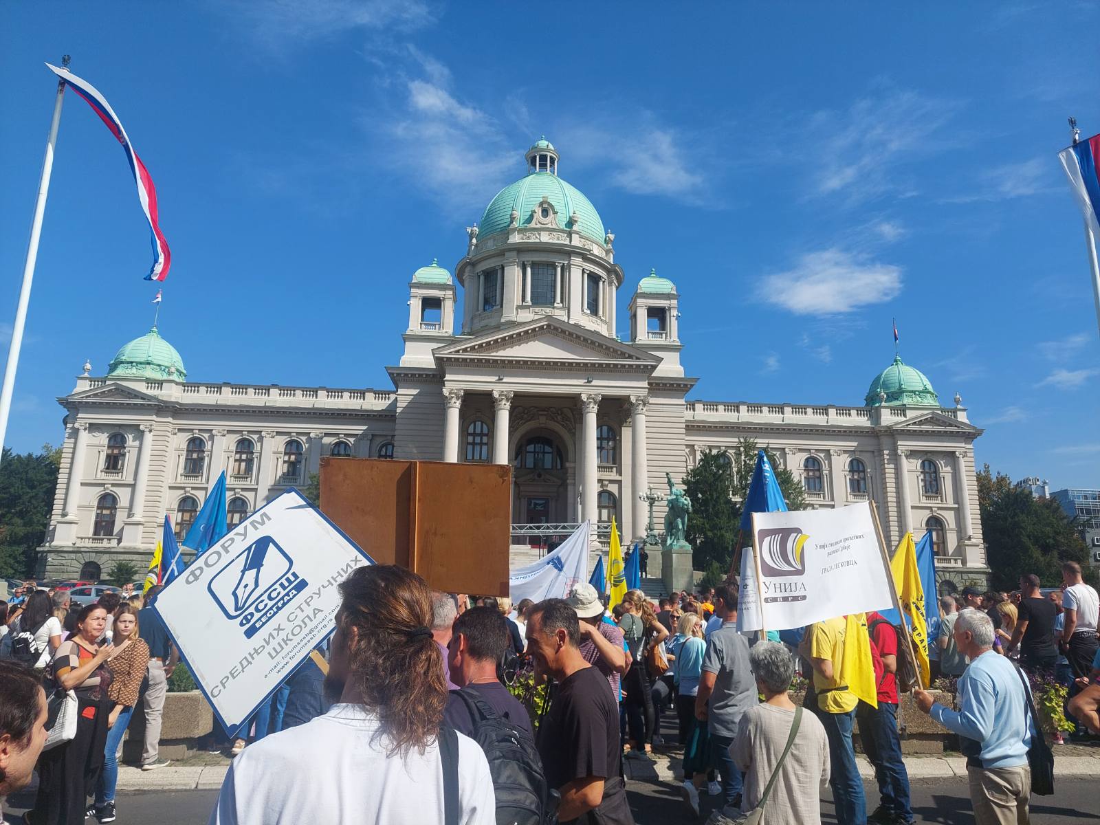 Valentina Ilić, predsednica Sindikata obrazovanja Srbije, rekla je za Danas da je previđena protestna šetnja Ulicom kneza Miloša do zgrade Vlade Srbije, gde će se obratiti predstavnici svih nivoa obrazovanja, od predškolskog do visokog, a učesnici protesta potom će nadležnima predati zahteve.