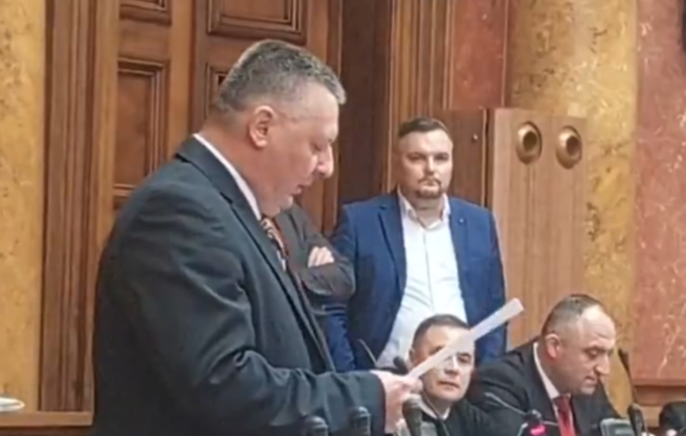 Poslanik Albijanić koji je do sada bio u koaliciji sa SNSom je svojim govorom rekao da neće podržati novu vladu. Odbor za sukobe je krenuo da ga okružuje dok šef poslaničke grupe Jovanov im nije naredio da se smire.@nedavimobgd pic.twitter.com/qWj4gr0qBJ