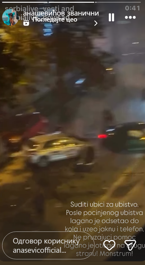- Suditi ubici za ubistvo. Posle počinjenog ubistva lagano je odšetao do kola i uzeo jaknu i telefon. Ne pružajući pomoć lagano je otišao na drugu stranu! Monstrum! - napisala je revoltirana i potresena Ana na Instagramu.