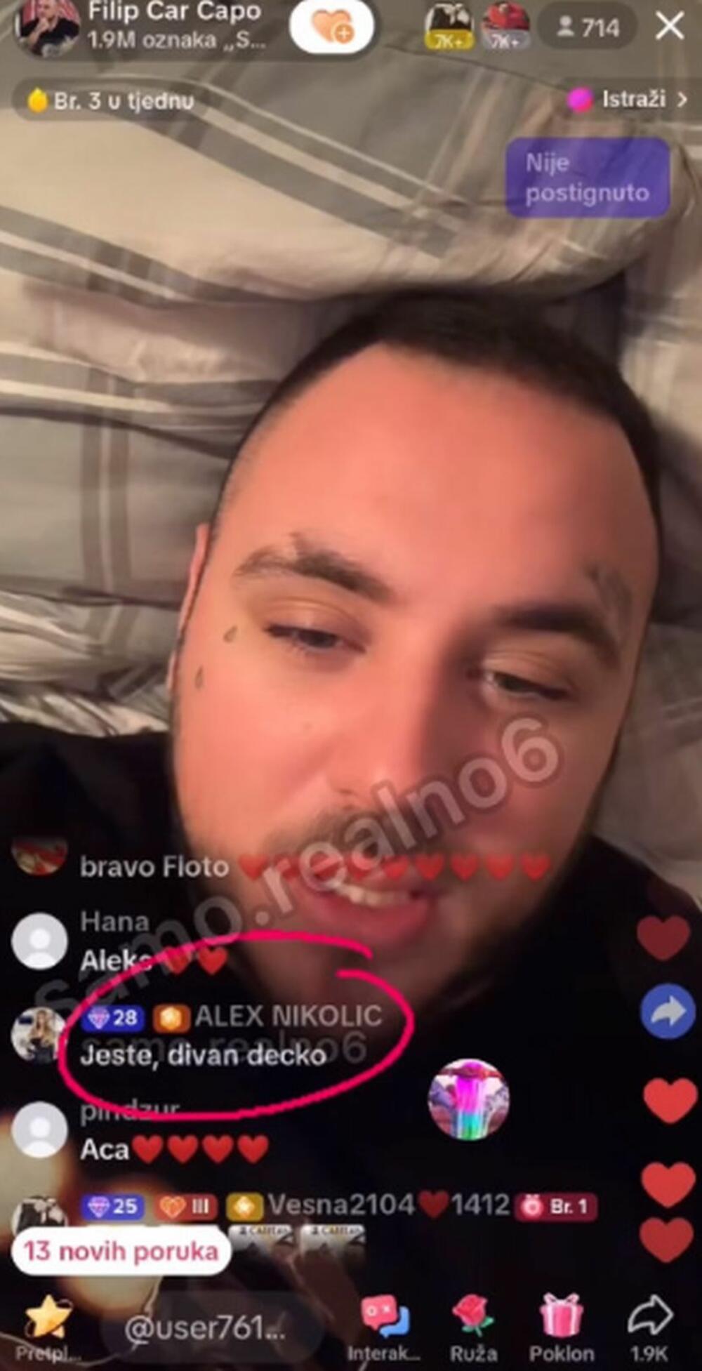 Naime, na jednom Instagram profilu, koji se bavi aktuelnim i starim rijaliti učesnicima, objavljena je fotografija na kojoj se vidi da je Aleksandra tačno u ponoć poslala gif u obliku srca dok je Filip držao lajv uključenje, a njima je tada zvanično bilo devet meseci otkako su otpočeli odnos.