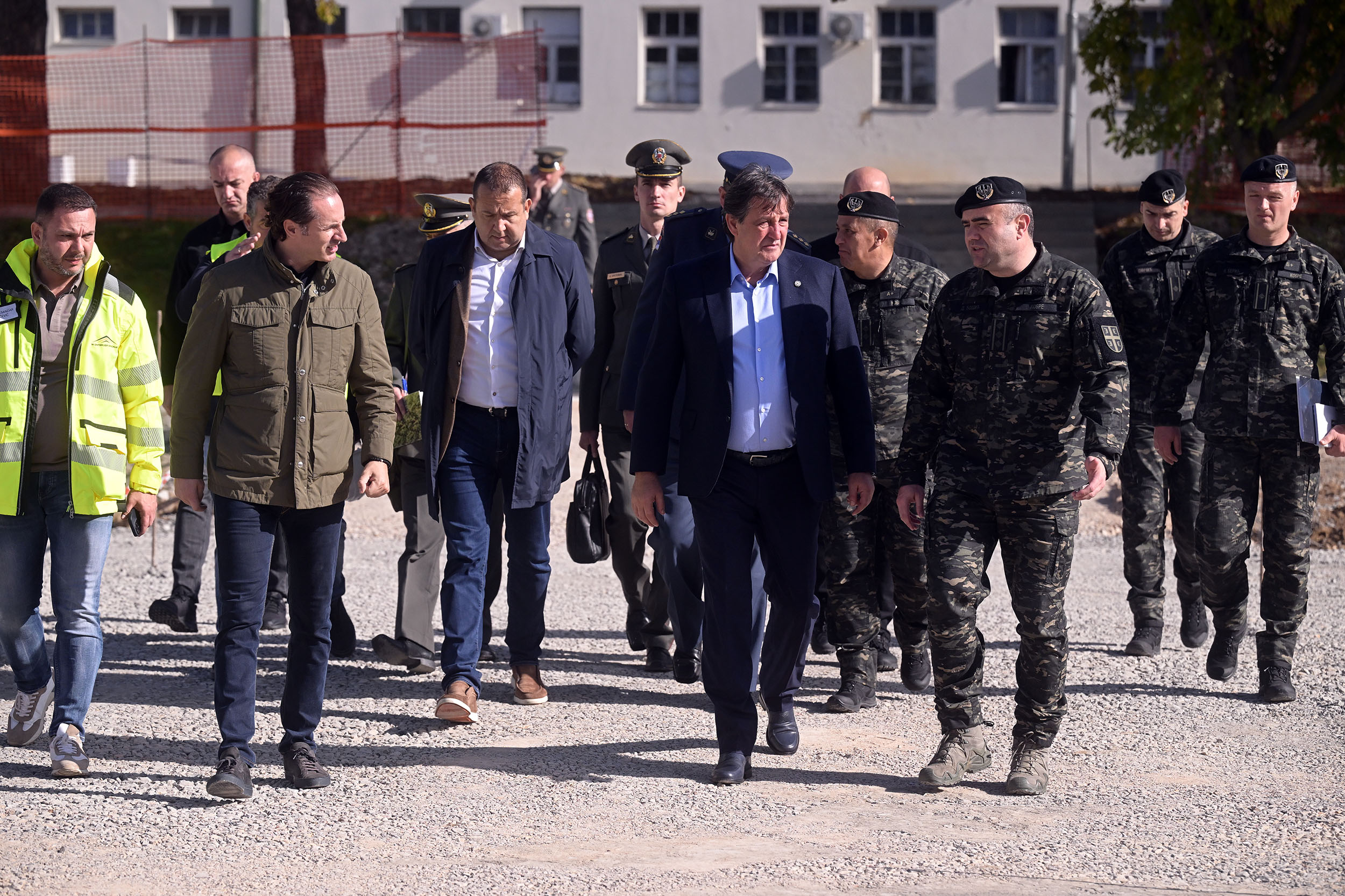 Radove na novom objektu u kasarni “Vasa Čarapić” sa ministrom odbrane obišli su vršilac dužnosti pomoćnika ministra za infrastrukturu i usluge standarda Boriša Roljić, šef Kabineta ministra odbrane pukovnik Nikola Matović i komandant Odreda vojne policije specijalne namene “Kobre” pukovnik Darko Đošić.