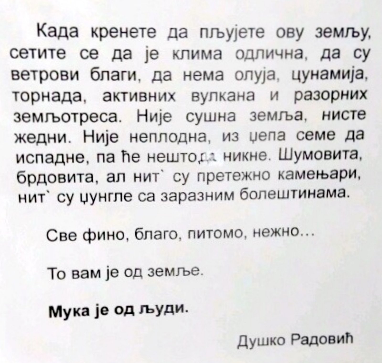 Živimo u jednoj od najlepših i najblagoslovenijih zemalja na svetu. Priroda nam je dala sve — ostaje pitanje šta mi dajemo zauzvrat!!!Glas javnosti