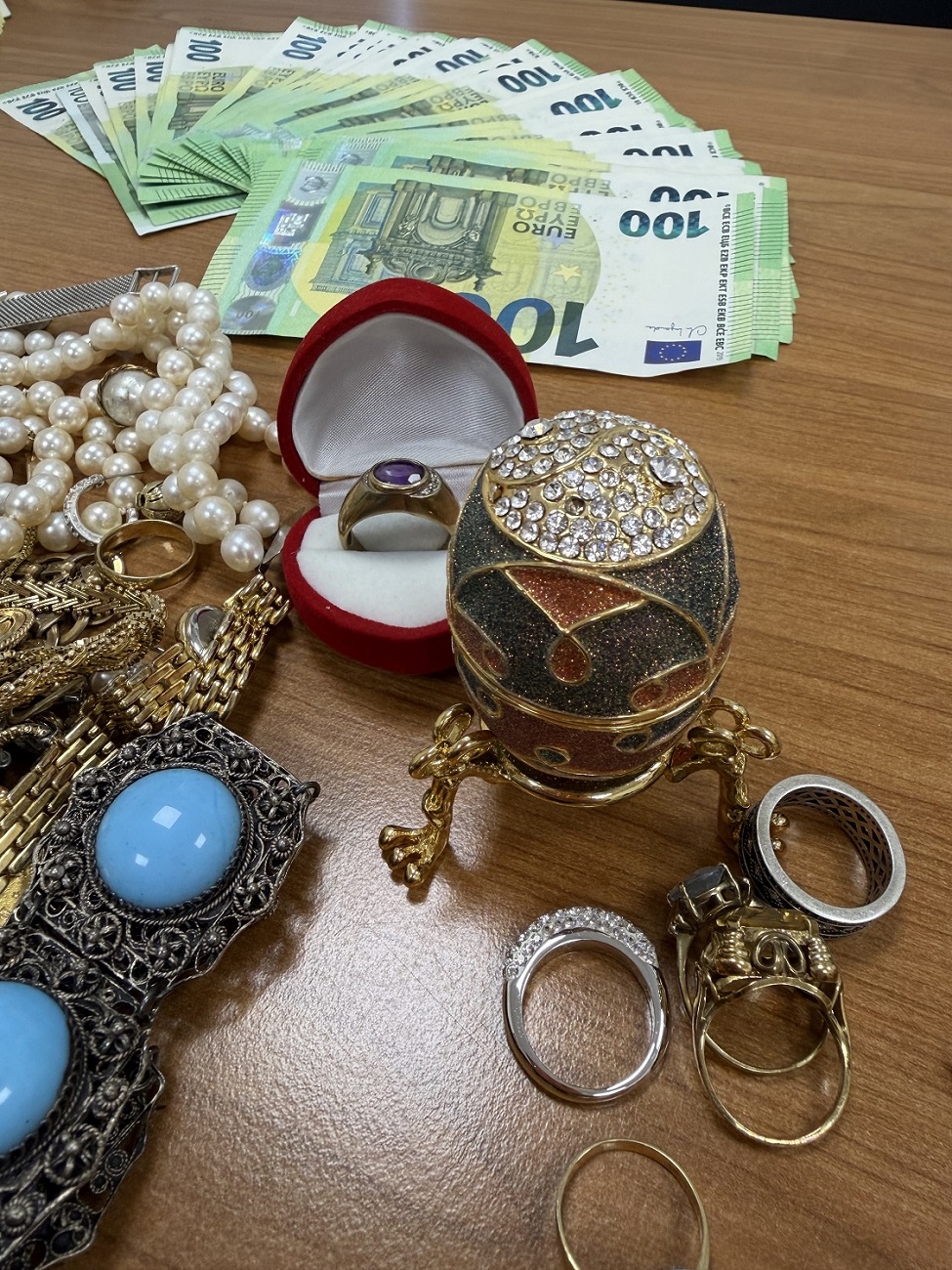 Reč je o više od 106.000 evra i skoro 1,7 kilograma zlatnog nakita, 11 satova, biserima, 144 raznih novčića i dve ukrasne kutije od kojih je jedna u obliku Faberžeovog jajeta.
