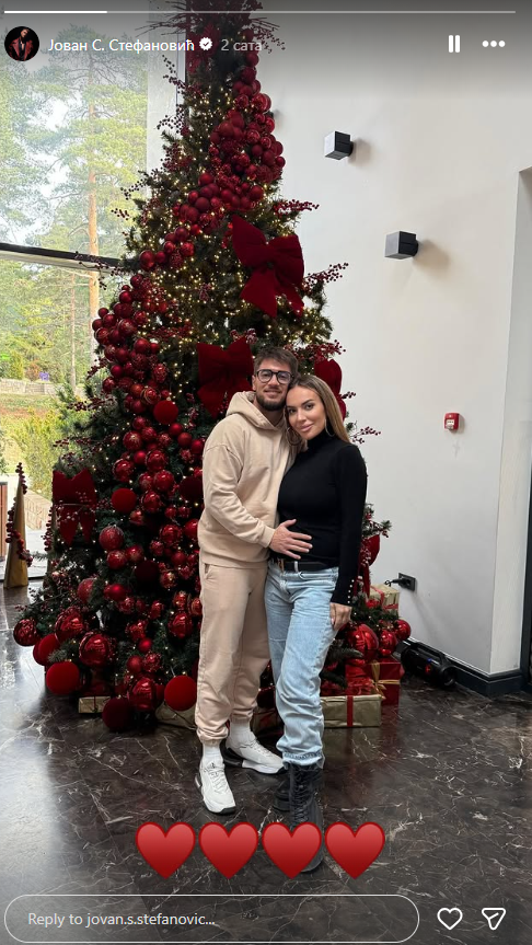 Oni su podelili fotografiju na kojoj poziraju ispred ogromne jelke, dok Joca drži svoju partnerku za stomak , zbog čega fanovi veruju da je Iva u blaženom stanju.