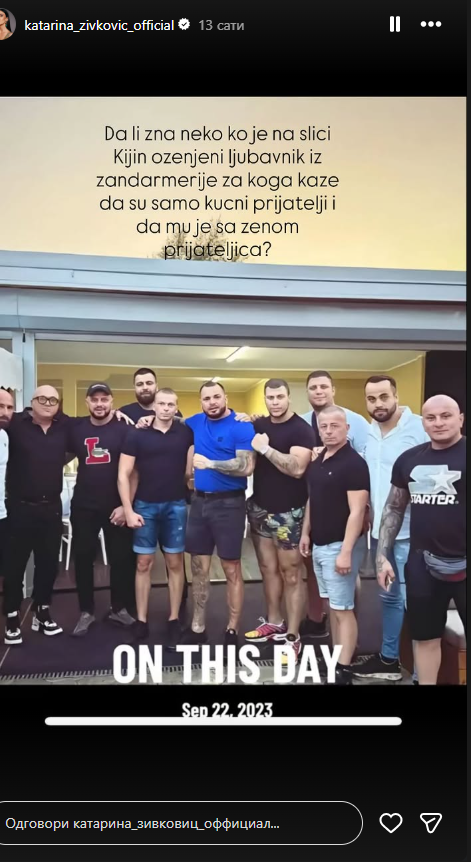 Katarina je sada objavila sliku na kojoj pozira 11 muškaraca, te napisala kako se na fotki nalazi i „Kijin oženjeni žandarm“.