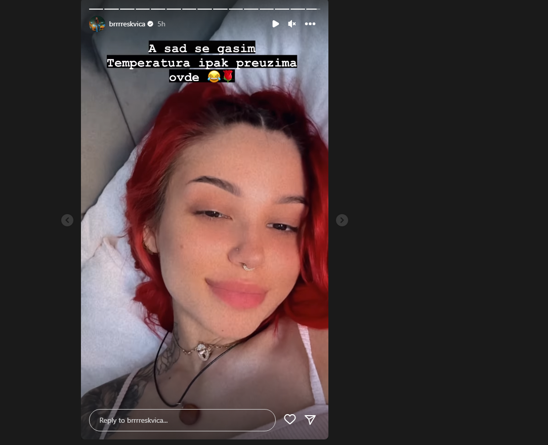 "Ostala sam bez cipela, pa sam ceo nastup pevala bosa, što će sigurno da se odrazi na zdravlje, ali šta je tu je. A sad se gasim, temperatura je preuzela sve".