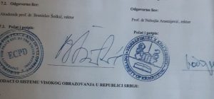 Međutim, Večernje novosti su pre izvesnog vremena pisale da je centralno sedište malo pozantog univerzoiteta ECPD u dalekoj Kostariki, da nesmetano koriste i logo Ujedinjenih nacija, navodno, i da imaju predstavništvo u Beogradu. Verovalo se da je veštačenje Instituta bezbednosti BIA kada su potvrđene sumnje da se na faksimilu diplome sudije Ustavnog suda u Prištini, Safeta Hodže, stoji potpis bivšeg rektora kragujevačkog Univerztieta, dr Nebojše Arsenijevića, prilično suzilo krug istrage, ali u Višem tužilaštvu Kraljevu Odeljenju za suzbijanje korupcije, i njen rukovodilac Sanja Protić, očigledno ne misle tako.