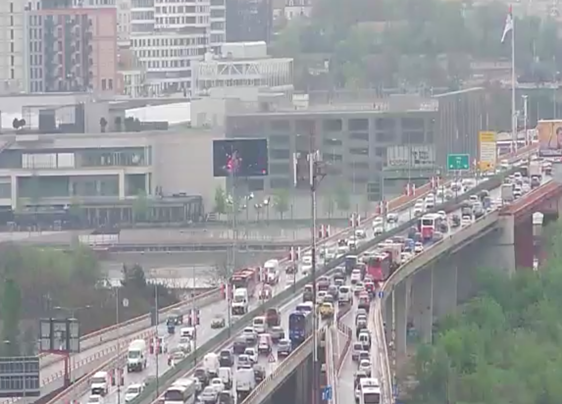 Takođe kolaps je i na Plavom mostu, u smeru ka centru Beograda.