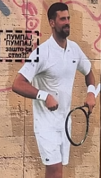 Novak je na fasadi u prirodnoj veličini, motivisan ovogodišnjim Vimbldonom, gde je slavio pobede pokretom pumpanja, a što je protumačeno kao podrška studentskim protestima.