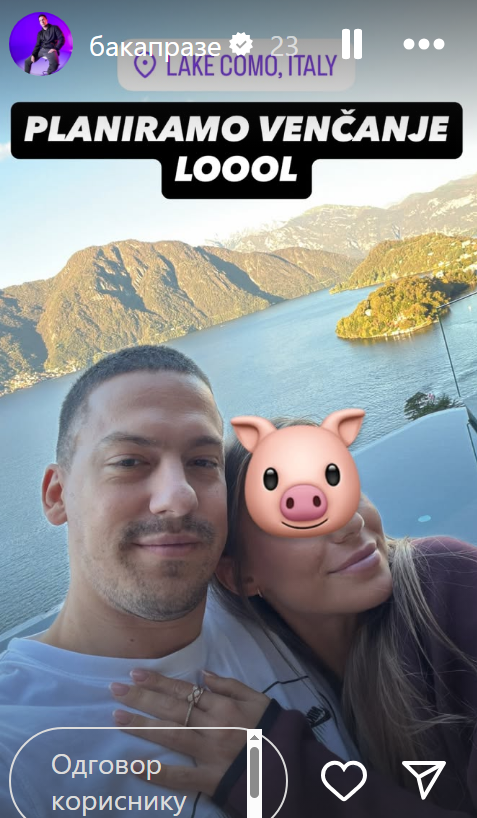 Jutjuber Bogdan Ilić, poznatiji kao Baka Prase, oglasio se iz Italije i otkrio da on i njegova devojka Milena Stamenković planiraju venčanje.