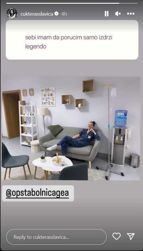 Pevačica Slavica Ćukteraš oglasila se na društvenoj mreži Instagram iz jedne privatne bolnice.